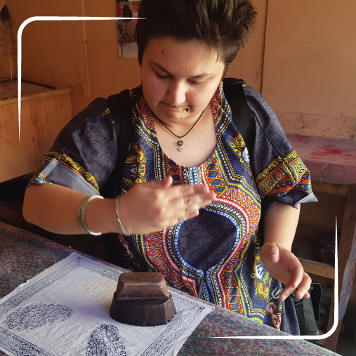 Amber is the founder of Bombus Artisanal and the maker that constructs all our products! Amber has technical and design skills including (but not limited to) clothing construction, natural dyeing processes and print design that have been developed throughout their education and personal experimentation.