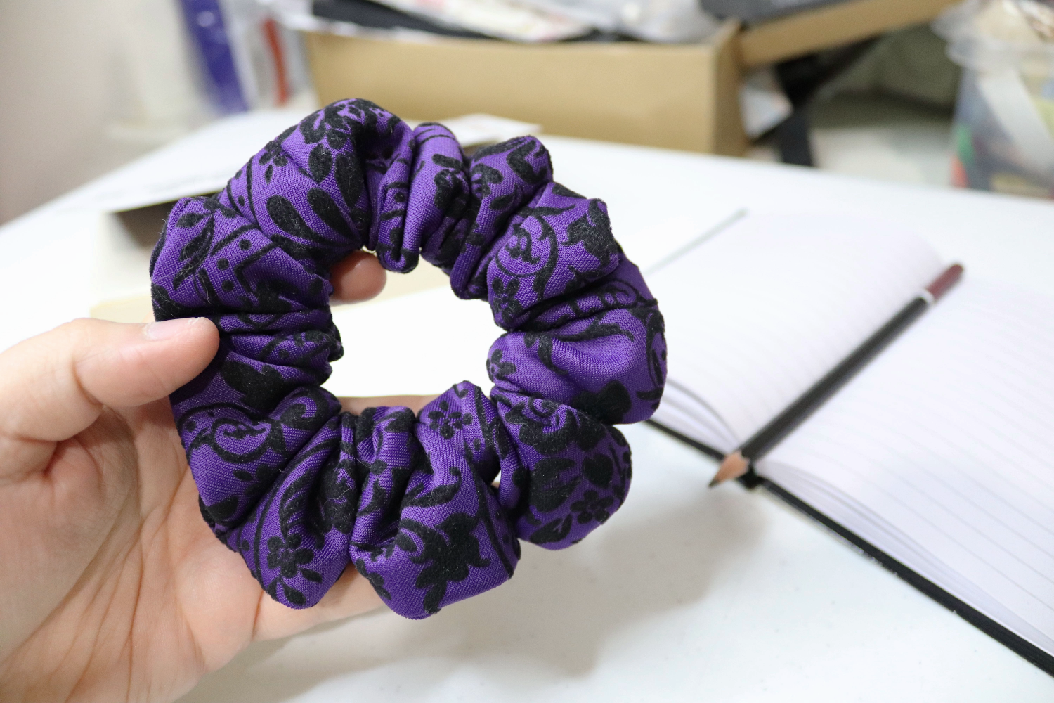 This fabric is just gorgeous and is a great chunky size for my thick ponytail!